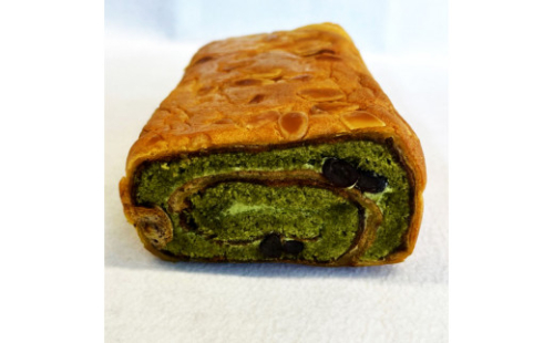 アーモンドを上に乗せたシュー皮の生地にスポンジを丁寧 に巻き上げて焼いたシンプルでずっしり感のある深く豊かな味わいです。