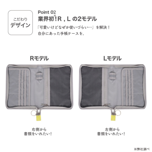 より多くの人が使いやすいようにポケット位置を変えた、R・Lの2モデルをご用意しました。