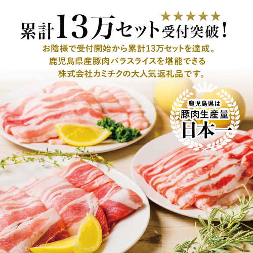 【鹿児島県産】 豚バラスライス 計1.5kgセット 豚肉 豚バラ肉 しゃぶしゃぶ 豚キムチ鍋 肉巻き 炒め物 薄切り 薄手 スライス お肉 国産 小分け パック 冷凍 カミチク 南さつま市