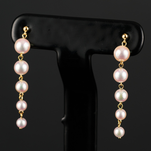 艶々揺れる♪アコヤ真珠のグラデーションピアス:C140-014