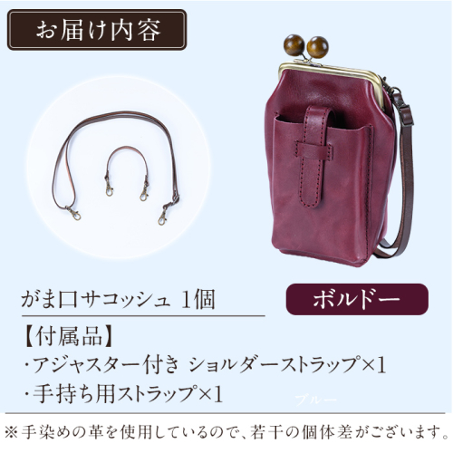 • K-157-C がま口サコッシュ<ボルドー>【m's】霧島市 革 革製品 牛革 本革 ヌメ革 バッグ 鞄 ショルダーバッグ ハンドバッグ 2way ハンドメイド 手作り エムズ