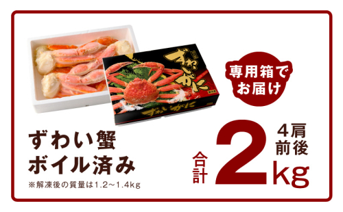 【特大5Lサイズ】ずわい蟹 2kg ボイル済み【4肩前後 昆布仕立て カニ かに 蟹 ズワイ蟹 ズワイカニ 海鮮 魚介 数量限定】 kgp0024