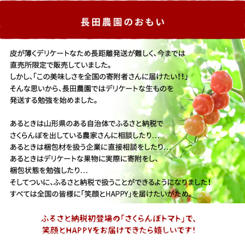 栽培方法が難しく希少なミニトマトです。長田農園初登場のさくらんぼトマトをぜひ!!