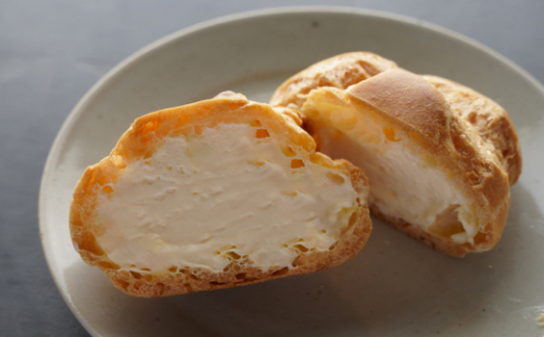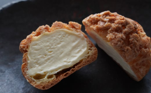 シュークリームの柔らかい生地と、クッキーシュークリームのアーモンドのザクザクとした食感が楽しめます。