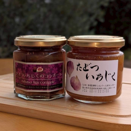 多度津産いちじくをふんだんに使用して作った いちじくジャム(今話題の希少糖含有シロップを使用したものも含む)と いちじくのコンポートのセットです♪ いちじくプチプチ食感そのまま!ぜひお友達にシェアしてください☆ 栽培からジャムの加工までシルバー人材センターで行っています。 ぜひお試しください! ■原材料名 【いちじくジャム】  いちじく、砂糖、レモン 【いちじくコンポート】  いちじく、砂糖、赤ワイン、レモン ■賞味期限 製造日から6ヵ月 ※詳細はラベルに記載 ■保存方法 ・開封後は冷所に保存してください。 ・直射日光に当てないようにしてください。 【 提 供 】 公益社団法人多度津町シルバー人材センター