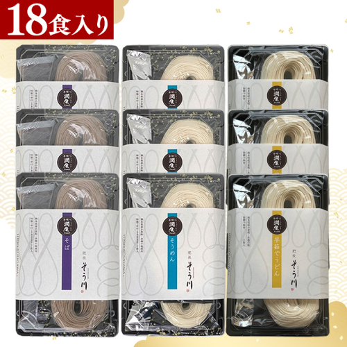 - 潤生「人気の定番麺」セット18食入り - うどん そば そうめん 饂飩 蕎麦 素麺 麺類 大容量 国産 九州産 小麦 つゆ付 国産小麦 手延べ てのべ 潤い 早茹で 再熟成 こだわり もっちり食感 簡単 煮込むだけ 常温保存可能 人気 おすすめ 熊本県 甲佐町