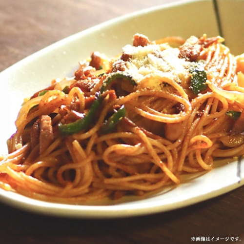 【ナポリタンソース】トマト(トルコ産)、砂糖、食用植物油脂、食塩、醸造酢、香辛料、馬鈴薯澱粉、たまねぎ、リンゴ、にんじん、にんにく/調味料(アミノ酸等)、増粘多糖類、パプリカ色素、カラメル色素、(一部に小麦を含む)