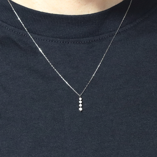 天然ダイヤモンド4石縦にセッティングされた 華やかダイヤモンドネックレス。 普段使いから華やかな場所など、 使い勝手の良い一品です。 【素材】 ・プラチナ(Pt900) ・天然ダイヤモンド 0.16ct 計4石  【チェーン】 ・プラチナ(Pt850) 小豆 40cm(引き輪下3cmにアジャスターカン付) 【サイズ】 幅:約11.3×2.4mm 【刻印】 ペンダントトップ 「Pt900 0.16」 チェーン 「Pt850」 色味や石に個体差があるため、 画像と若干の違いがでる場合があります。 この返礼品については、製品製造の全工程を区域内で行っており、 返礼品の付加価値の7割以上を占めているため、地場産品基準に適合しています。