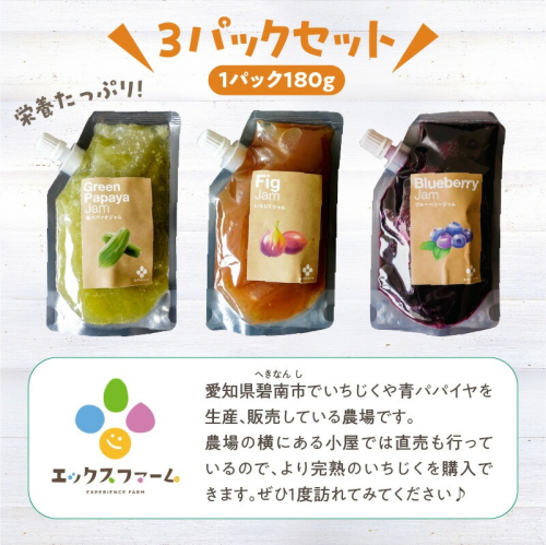 無添加 青パパイヤ・いちじく・ブルーベリーのジャム 3色セット H164-006