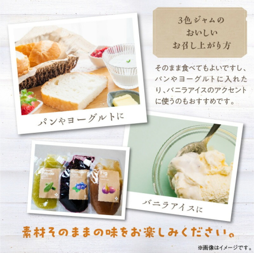 素材の味を活かして無添加で仕上げた、青パパイヤ、いちじく、ブルーベリーののジャム3色セット。