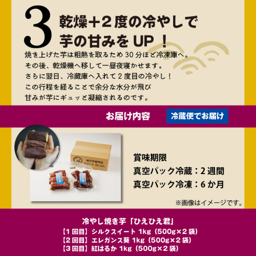 - 【全3回】毎月1種類ずつ届く 冷やし焼き芋定期便 約1kg×3回(計3種) 芋スイーツ H047-038