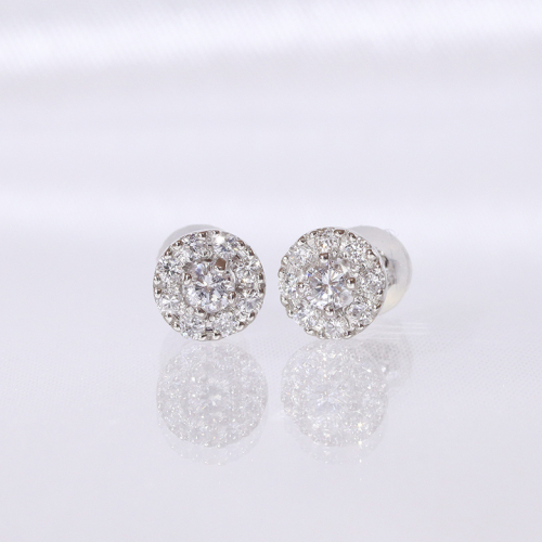 片側0.17ctの取り巻きダイヤモンドピアス。