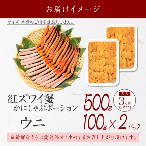 3218. 紅ズワイ蟹ポーション500g前後 生食可 ウニ チリ産 冷凍 雲丹 うに 200g カニ かに 蟹 海鮮 海鮮丼 鍋 しゃぶ 紅 ズワイ ずわい ポーション 送料無料 北海道 弟子屈町