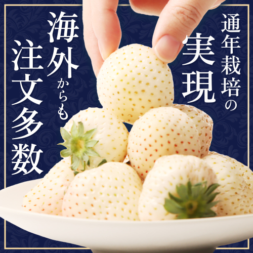 ■ゆきぼたん:みずみずしい甘い香りとトロピカルな桃の風味が特徴です。果皮も表面の粒も真っ白な、超希少な苺です。