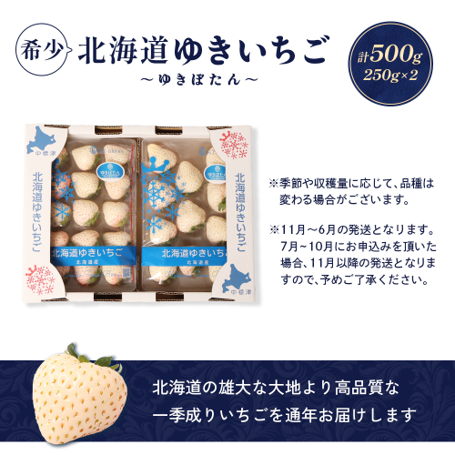 - 【11月以降、随時発送!】【北海道産】ゆきいちご(白いちご) 2Pセット 250g×2 計500g 苺 イチゴ 白いちご 一季成りイチゴ ゆきぼたん パールホワイト 希少 高級 ギフト お取り寄せ ふるさと納税 北海道 中標津【59001】