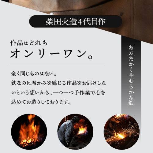 デザイン、設計をはじめ、鉄板を焼き表面をたたいて凹凸をつけ形成し蜜蝋でコーテングをして仕上げる。一連の製造工程をすべて市内工房にて行っています。