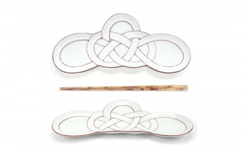 有田焼 朱線松結び 長皿 2枚セット 24to3【西富陶磁器オリジナル】食器 器 うつわ 皿 前菜皿 菓子皿 スイーツ皿 プレート 水引 お祝い ハレの日 お正月 手描き 30000円 3万円 A30-830