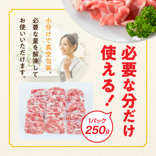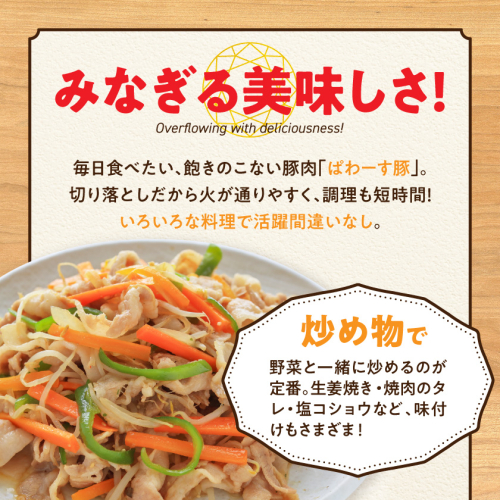 自然豊かな都城盆地で育った「ぱわーす豚」。 無薬飼料にこだわり、生産者の愛情を込めて健康に力強く育てられています。 250gずつ小分けし真空包装していますので、必要な量を解凍してお使い頂けます。 炒め物や豚丼、豚汁、蒸し焼きなどいろいろな料理でお召上がり下さい♪
