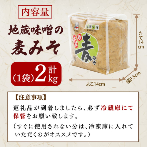 - 明治から続く老舗 地蔵味噌の麦みそ2kg | 麦みそ 国産 味噌 みそ ミソ 調味料 味噌汁 みそ汁 老舗 愛媛県 鬼北町