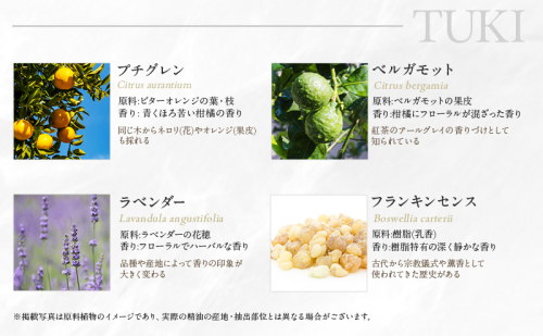 - 木々之重 エッセンシャルオイル TUKI 10ml アロマオイル アロマオイル 天然 由来 100% アロマグッズ 香り 精油 北海道ラベンダー プチグレン フランキンセンス ベルガモット 休息 安らぎ 和らぎ 癒し 贈答 プレゼント ご褒美