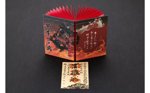 そして最も特徴的なのは御城印を張り込む本体台紙。通常は白い台紙だが、本帳は真田の赤備えをイメージしてすべてが「真田レッド」。赤い台紙を起用したのは本邦初。真田レッドの本帳を手に、心躍る、心猛る御城印集めの旅をお楽しみ下さい。