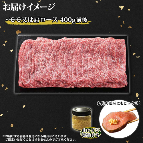 3373.霜降り 黒毛和牛 A4 A5 400g前後 2人前 赤身 牛肉 牛 赤肉 和牛 山わさび モモ カタ 肉 送料無料 北海道 弟子屈町