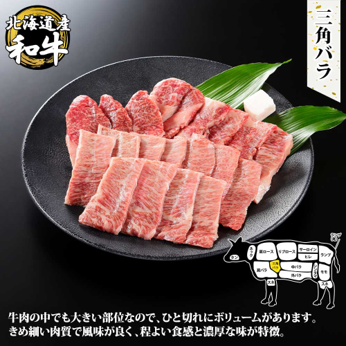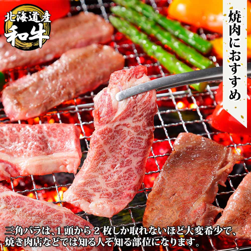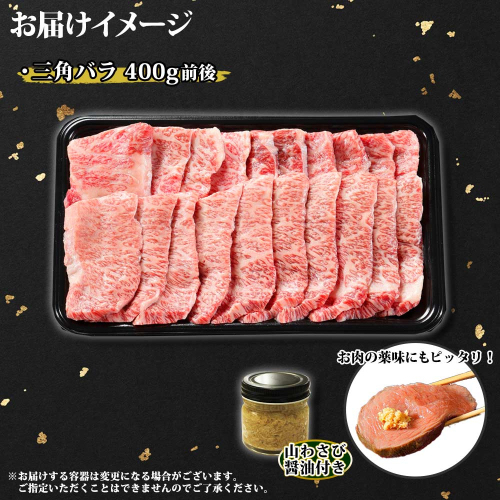 2551. 霜降り 黒毛和牛 A4 A5 カルビ 三角バラ 焼肉 400g前後 2人前 牛肉 牛 和牛 山わさび 肉 お取り寄せ 送料無料 北海道 弟子屈町