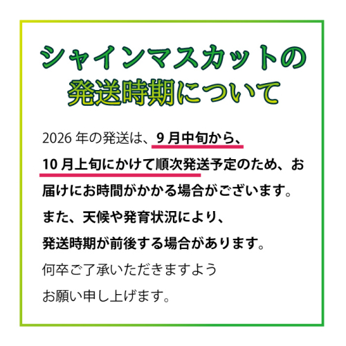 2026年9月中旬~10月上旬まで※天候や生育状況により発送時期が前後する場合がございます。