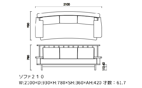 - ソファ210W:2100 D:930 H:780 SH:360
