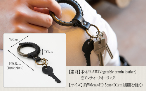 カラー:ヌメ革・ブラック素材:本体/ヌメ革(Vegetable tannin leather)※アンティークキーリングサイズ:約W6cm×H9.5cm×D1cm(鍵部分除く)