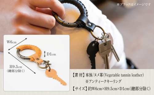 カラー:ヌメ革・オレンジ素材:本体/ヌメ革(Vegetable tannin leather)※アンティークキーリングサイズ:約W6cm×H9.5cm×D1cm(鍵部分除く)