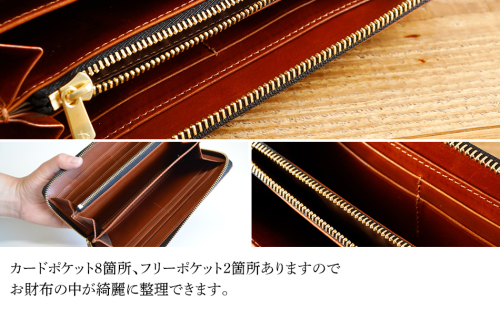 表革と同じ革を内装にも使い、高級ブランドにも使われているエクセラファスナーを使用。スタンダードで上質な本革を感じられるシンプルなデザイン。個体差のある手触り、革の表情をお楽しみ下さい。カードポケット8箇所、フリーポケット2箇所ありますのでお財布の中が綺麗に整理できます。提供:ナデルファーデン