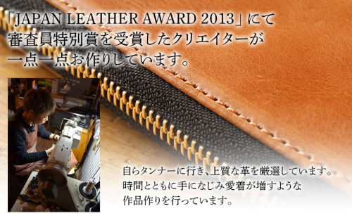 • ラウンドジップ長財布(オイルレザー・キャメル) BK023