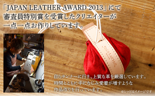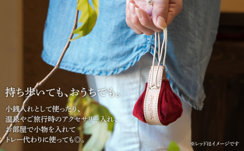 本革専門店が作る巾着型小物入れ。小銭入れとして使ったり、温泉やご旅行時のアクセサリー入れ、ご自宅の小物トレーとして使っても◎。小振りだけどかなりの収納力があります。大切なアクセサリー類も本革が優しく包み込み安心で、小さな指輪やピアスなどの紛失防止にも活躍します。