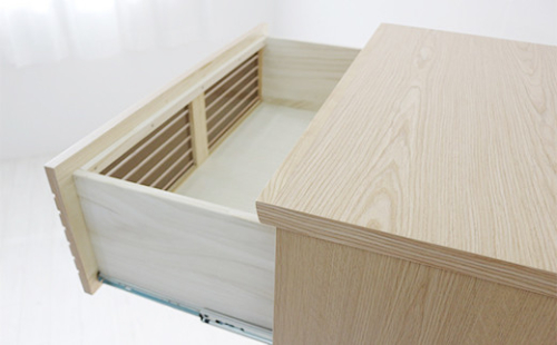 ・引き出しにはガラス付きで埃の侵入も防ぎます。