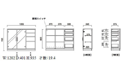 サイズ W1202 D401 H935カラー ブラウン材質 ウォールナット突板