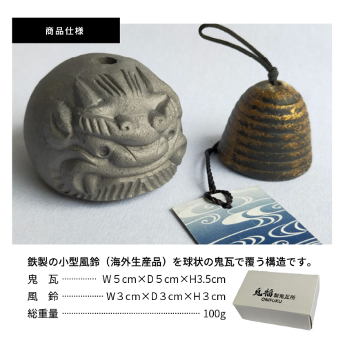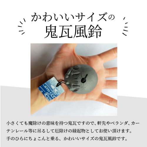 幸せを願う魔除けの鬼瓦を風鈴と合わせ、風鈴の音を抑えたことでマンション等でも飾りやすい鬼瓦の新形態です。