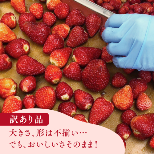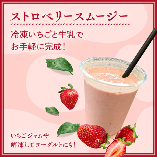 大きさ・形の不揃いなイチゴを500gのパックで5パックお届けいたしますので、たっぷり冷凍イチゴを堪能できます。