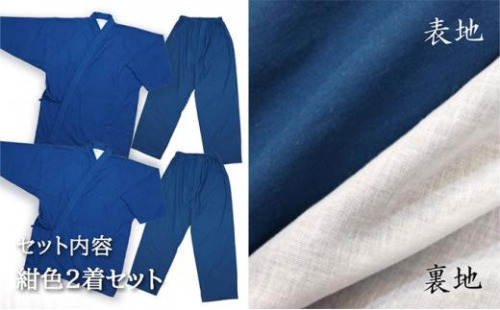 - 和ざらしガーゼ(綿100%)のルーム(ホーム)ウエア【紺色 同サイズ2着組】伝統のコットンで作る作務衣でくつろぎタイムを満喫