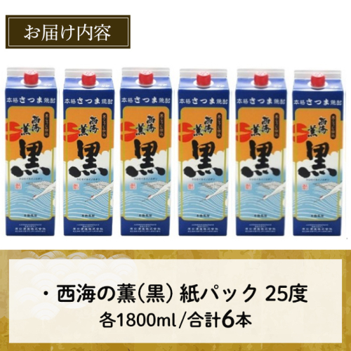 No.673 <本格芋焼酎>西海の薫「黒」セット(紙パック・各1800ml・計6本)  128676 - 鹿児島県日置市