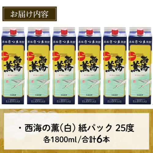 No.674 <本格芋焼酎>西海の薫「白」セット(紙パック・各1800ml・計6本) 128677 - 鹿児島県日置市