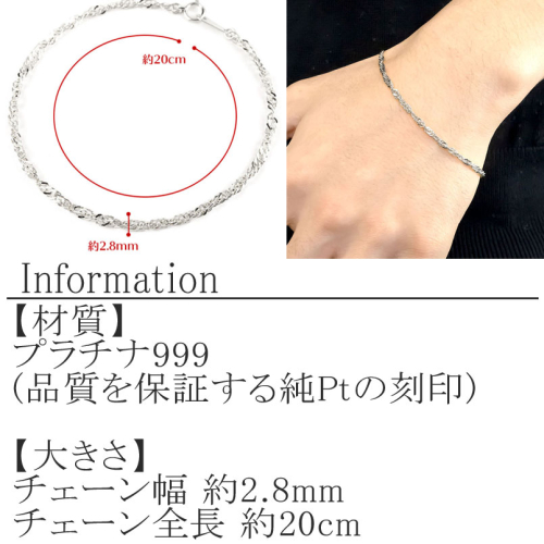 純プラチナ ブレスレット 20cm pt999 スクリュー 管理番号210325mro102pt999b20