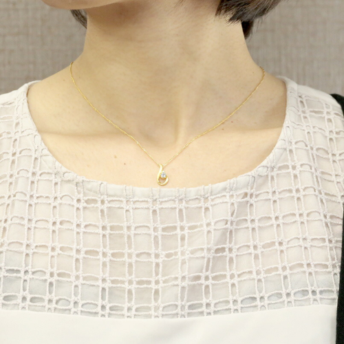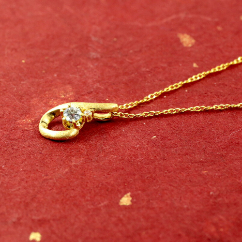 ドロップ型デザインに天然ダイヤモンドをあしらった、デザイン性の高い純金ペンダント。