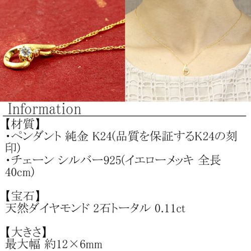 純金 ネックレス ダイヤモンド 24金 ティアドロップ ペンダント ゴールド