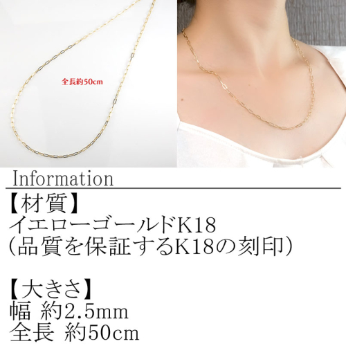 18金 ネックレス 50cm クリップチェーン 18k ゴールド