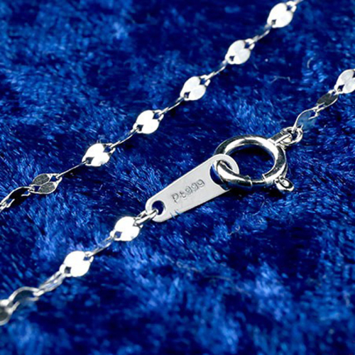 通常のチェーンに比べて地金面が広いため光をより多く反射し純プラチナ特有の眩