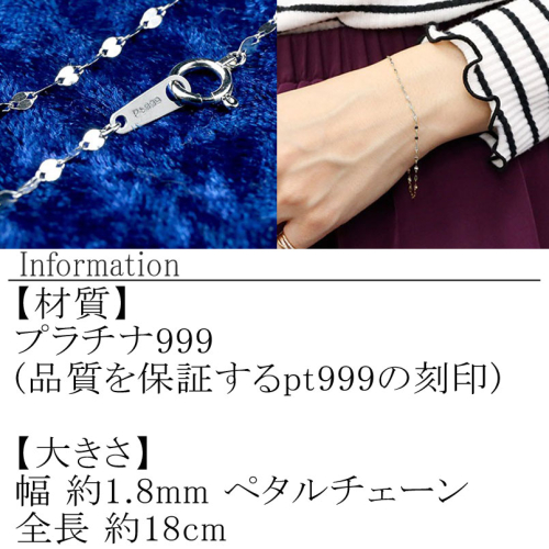 純プラチナ ブレスレット 18cm ペタルチェーン pt999 シンプル