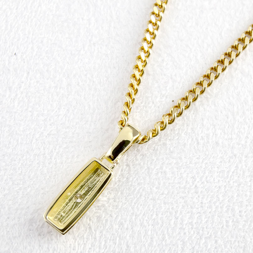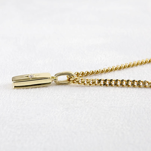 シンプルでソリッドなペンダントに、輝かしくダイヤモンドが光る。