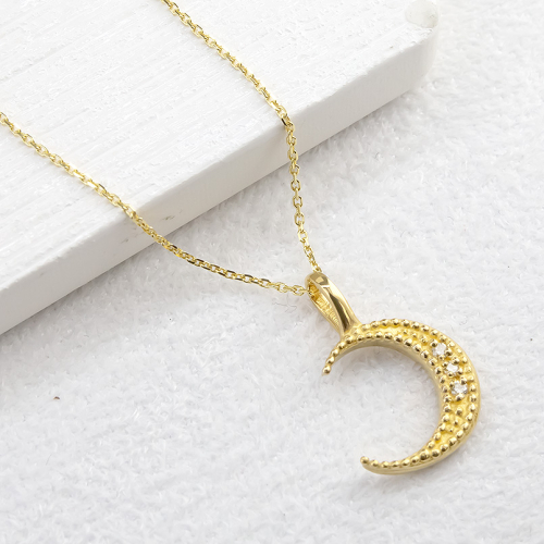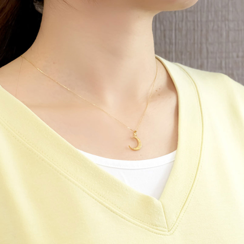 純金 ネックレス イエローダイヤモンド 三日月 ムーン 月 24k 24金 管