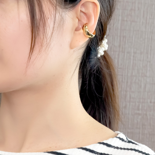 甲丸のインパクトのあるイヤカフ 18金の地金の輝きを充分に堪能出来るスタイリッシュ&ゴージャスなフープ リングとしても使えるコスパの高いジュエリー こちら商品は片耳専用です。